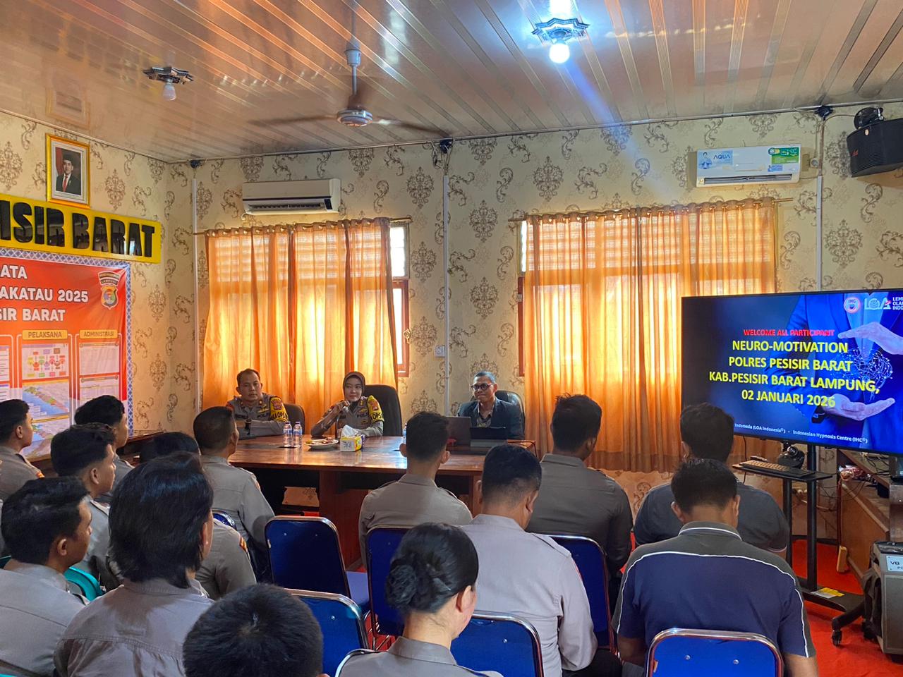 Kapolres Pesisir Barat Pimpin Kegiatan Hipnoterapi PersonelPesisir Barat – Kapolres Pesisir Barat AKBP Bestiana, S.I.K., M.M., memimpin langsung kegiatan hipnoterapi bagi personel Polres Pesisir Barat yang dilaksanakan pada Jumat, 2 Januari 2025, bertempat di Ruang Vicon Polres Pesisir Barat. Kegiatan hipnoterapi ini diikuti oleh seluruh personel Polres Pesisir Barat serta personel Polsek jajaran. Kegiatan tersebut bertujuan untuk meningkatkan kesehatan mental, mengurangi tingkat stres, serta membangun semangat dan motivasi kerja personel dalam pelaksanaan tugas kepolisian sehari-hari. Dalam sambutannya, Kapolres Pesisir Barat AKBP Bestiana, S.I.K., M.M., mengatakan bahwa kegiatan hipnoterapi ini merupakan salah satu bentuk perhatian pimpinan terhadap kondisi psikologis personel.