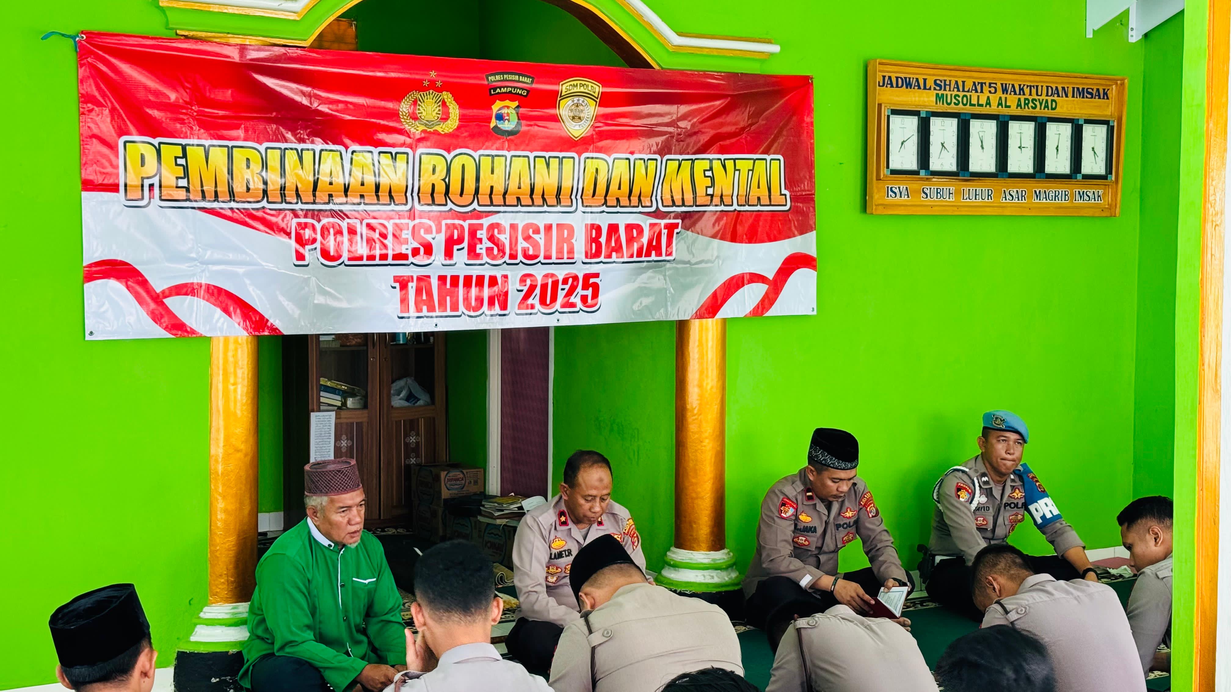 Waka Polres pesisir barat Pimpin Langsung Kegiatan pembinaan rohani dan mental(Binrohtal) rutin di mushola Al-ArsyadPesisir Barat - Polres Pesisir Barat melaksanakan kegiatan Pembinaan rohani dan mental (Binrohtal) di mushola Al-Arsyad jalan kuala stabas kel. Pasar Krui Kec. Pesisir Tengah Kab. Pesisir Barat. Jumat (3/10/2025) Kegiatan Binrohtal (Pembinaan rohani dan mental) di pimpin Langsung oleh Wakapolres Pesisir Barat KOMPOL SLAMET RAHARJO, S.H.,M.H., dan hadiri oleh Para Personil Polres Pesisir Barat. Wakapolres Pesisir Barat KOMPOL SLAMET RAHARJO, S.H.,M.H. mengatakan bahwa "kegiatan pembinaan rohani dan mental (Binrohtal) ini dilaksanakan rutin setiap hari Kamis. Binrohtal ini sebagai wadah untuk memberikan siraman rohani dan moral sehingga akan tumbuh rasa toleransi, kebersamaan, saling menghormati antar umat beragama" Ujarnya